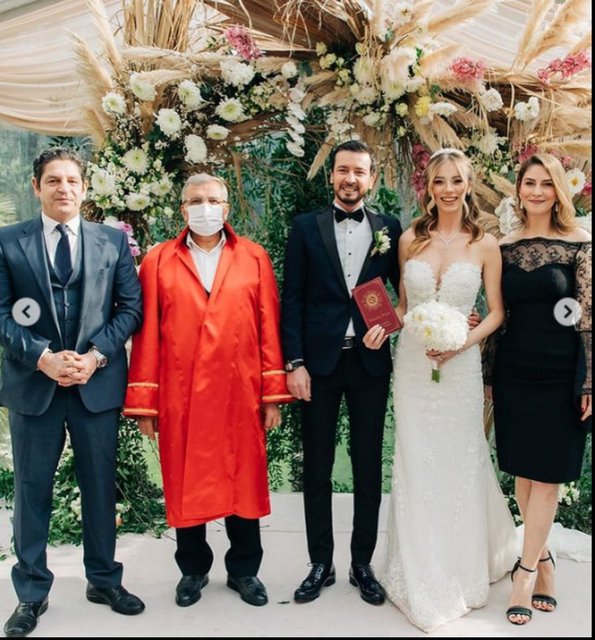 Pandemi nedeniyle sınırlı sayıda katılımın olduğu törende çiftin nikahını Beykoz Belediye Başkanı Murat Aydın kıydı. Çiftin şahiterinden biri de spor yorumcusu Güntekin Onay'dı.