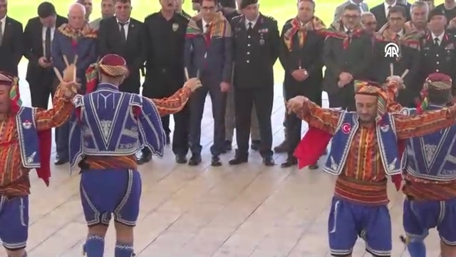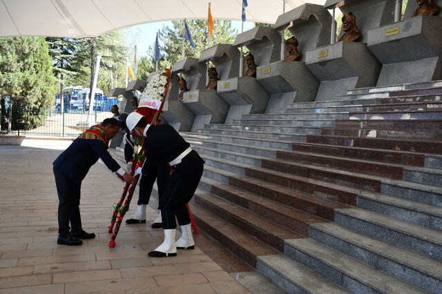 Daha sonra Türk Büyükleri Anıtı'na çelenk sunuldu, saygı duruşunda bulunuldu ve İstiklal Marşı okundu.