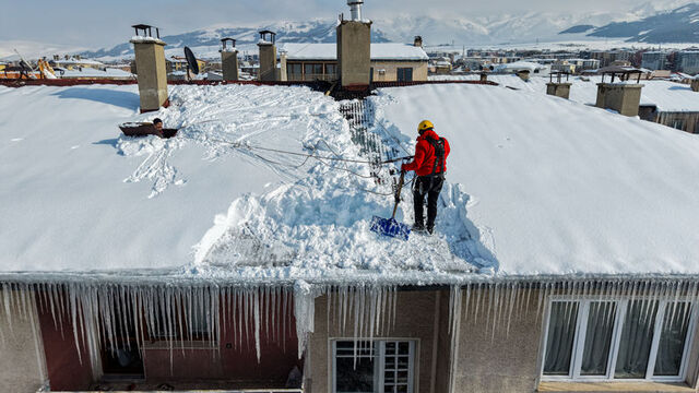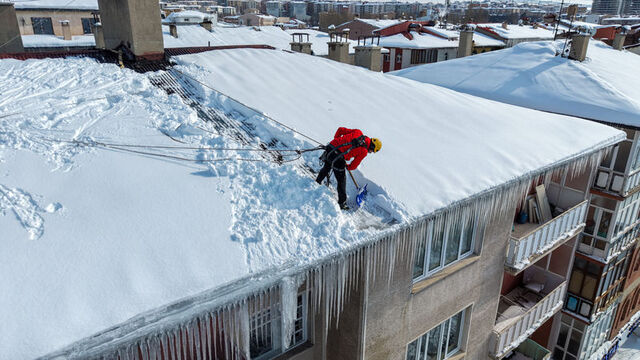 Belirli ücret karşılığında verdikleri hizmet kapsamında bina yöneticilerinden gelen talepleri yerine getiren ekipler, çatılardaki kar ve buz birikintilerini tamamen temizleyerek kalıcı çözüm sunmayı amaçlıyor.