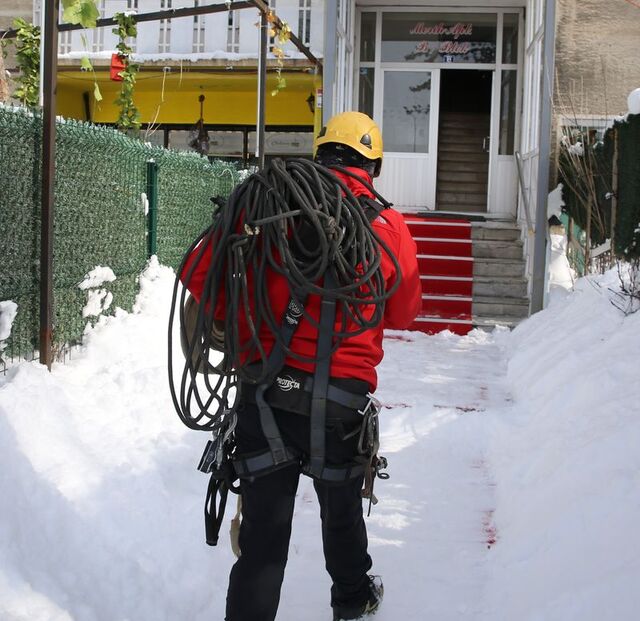 Erzurum'da çatılardaki tehlikeye karşı profesyonel dağcılar "buz timi" kurdu
