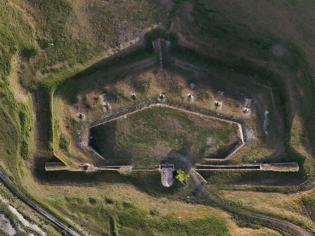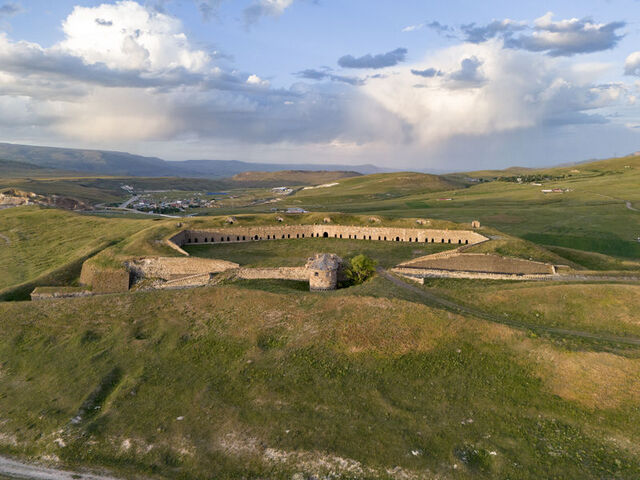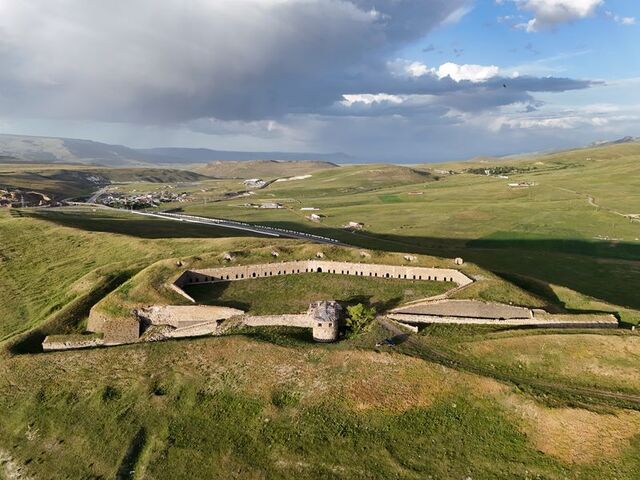 Erzurum-Kars kara yolunun 5. kilometresinde bulunan Paşapınarı bölgesindeki tepede konumlandırılan ve drone ile görüntülenen tabya, tüm ihtişamıyla tarihin izlerini taşıyor.