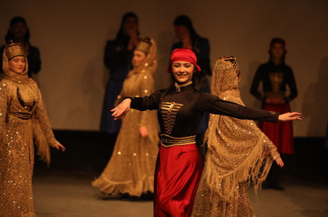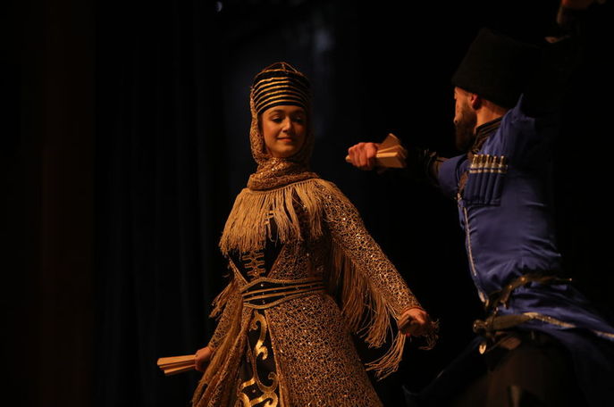 Yeni Suriye'nin "ulusal kimlik ve birlik" mesajını taşıyan kutlamalar kapsamında sahne alan Çerkes halk dans ekipleri, geleneksel Çerkes kıyafetleriyle folklor gösterileri sundu.