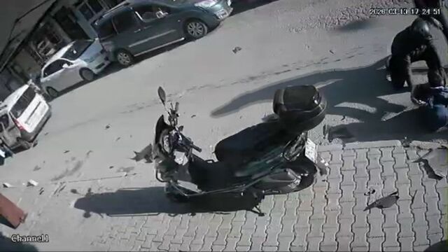 Motosiklet ile otomobilin çarpışması ve sonrasında yaşananlar ise saniye saniye iş yerinin güvenlik kameralarına yansıdı.