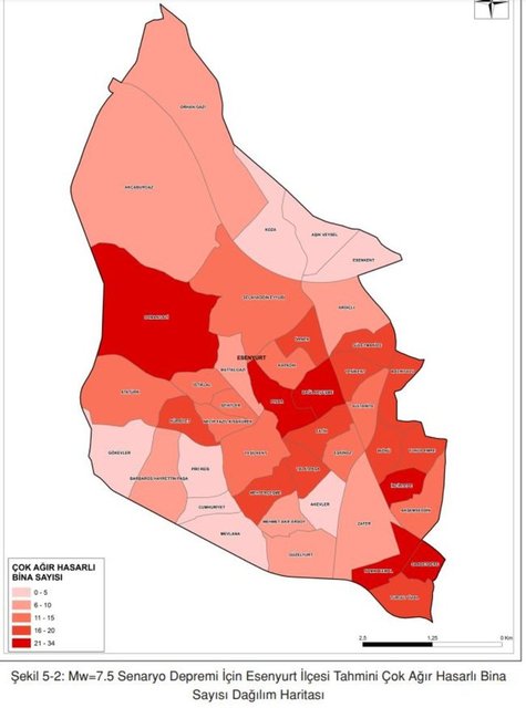 Öte yandan, orta hasarlı binaların da onarım yerine yıkılıp yeniden inşası çoğunlukla daha uygundur. Senaryo depreminde, Esenyurt’taki binaların ortalama %26’sının (yaklaşık 10.242 bina) orta ve üstü seviyede hasar göreceği tahmin edilmektedir. Yaklaşık 28.443 binanın ise, hasarsız veya hafif hasarlı olması beklenmektedir.
