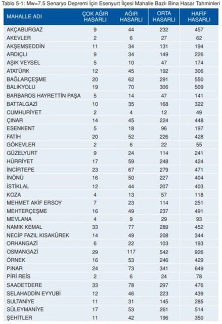 İBB olası deprem kayıpları tahminleri kitapçığında ilçe ilçe analizler ve haritalar yer alıyor. Ayrıca meydana gelebilecek bir depremde binaların hasar durum sayı tahminlerine de yer verildi.