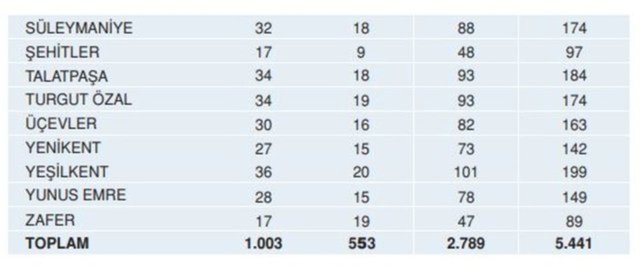 En fazla yüksek katlı binaların bulunduğu Yeşilkent ve Talatpaşa mahalleri çok yoğunluğun olduğu bir yerleşim alanlarına sahip bir deprem olması durumunda en çok hasarın olacağı yerleşim yerlerinin başında gelmektedir.