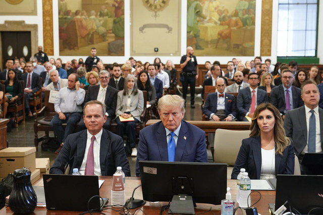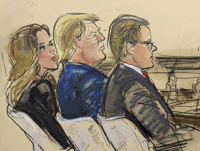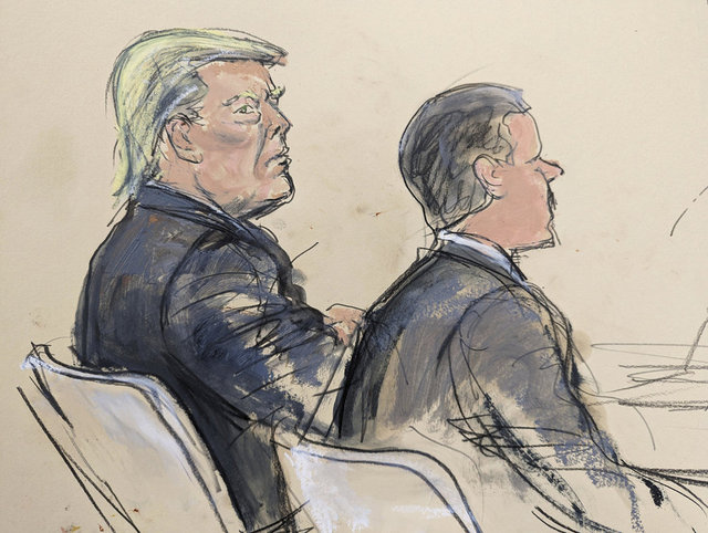 Duruşmanın öğleden sonraki oturumuna da katılan Trump, burada tekrar avukatlarının yanına oturarak savcılık ve savunma tarafının argümanları ile şahitleri dinledi.
