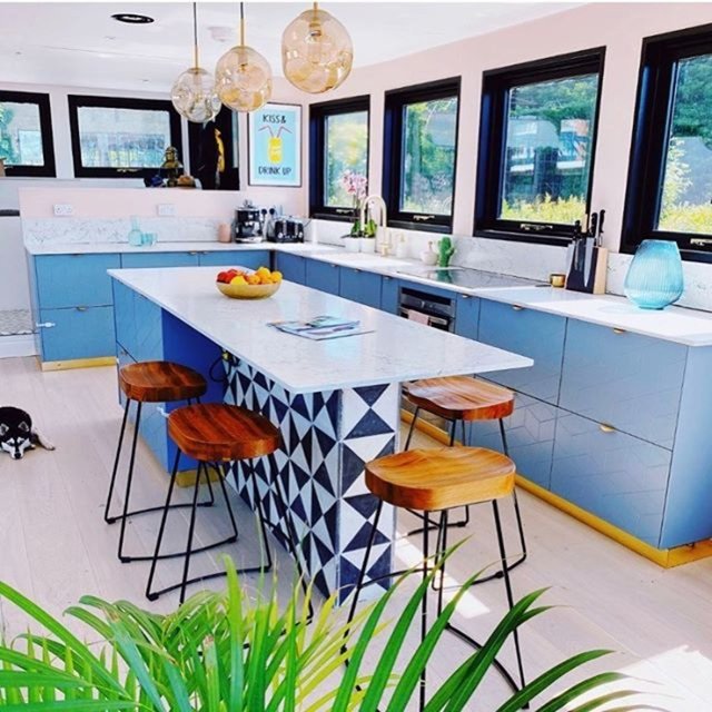 Mutfakta son yılların yükselen modası geometrik desenler kullanıldı ve tezgahta açık renkler tercih edildi.