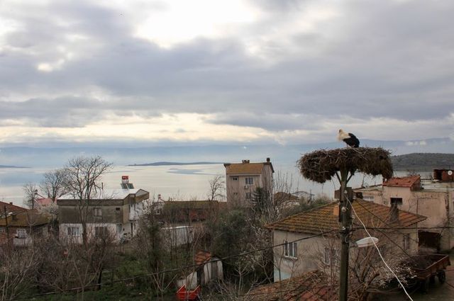 Bursa'da, Uluabat Gölü'nün kıyısında bir yarımadanın üzerinde kurulan ve Leylek Köyü olarak anılan Karacabey ilçesine bağlı Eskikaraağaç Mahallesi'nin maskotu Yaren adlı leylek, bu yıl da göl manzaralı yuvasına yerleşti.