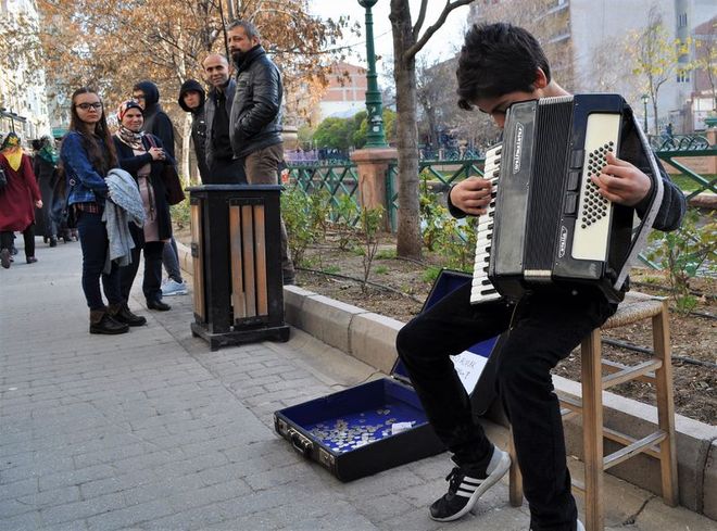 Piyano hayaliyle sokaklarda akordeon çalıyor