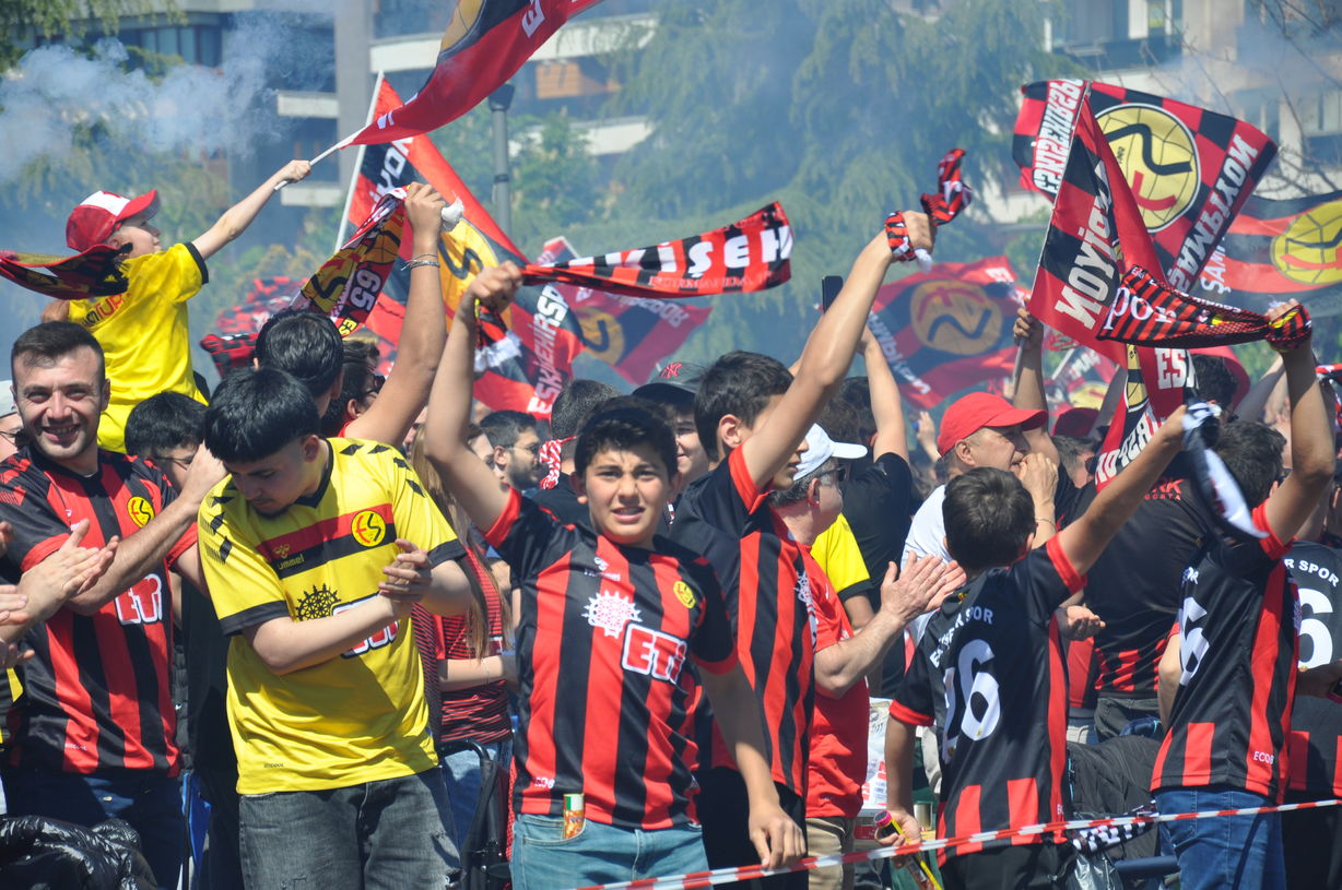 Takımlarını Eskişehir'e kurulan dev ekranlarda destekleyen taraftarlar, son düdükle adeta kendinden geçti. Kanlıkavak ve Dede Korkut Parkı'nda kurulan dev ekranlardan müsabakayı takip eden Eskişehirspor taraftarı, maçın bitmesinin ardından şampiyonluğu kaval havası ve çiftetelli oynayarak kutladı.