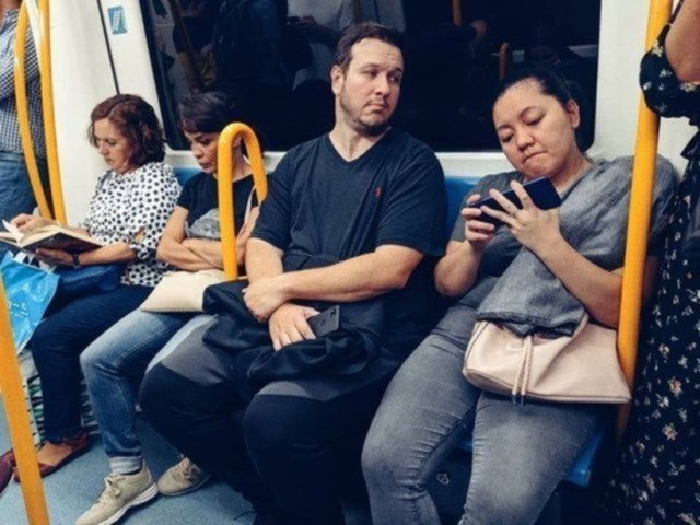 Komedyen ve oyuncu Şahan Gökbakar da metrodan bu fotoğrafını paylaştı. Gökbakar fotoğrafına, "Ben de izleyim mi yenge?" notunu düşmüştü.