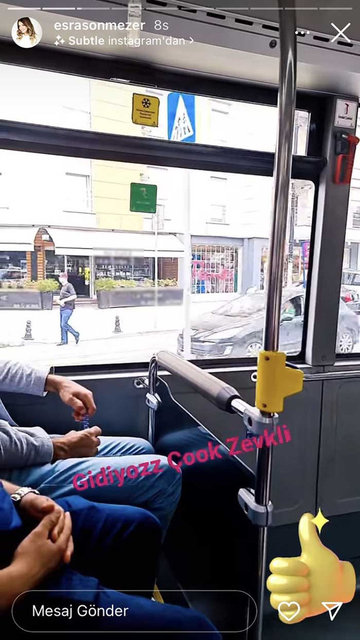 Sönmezer, önceki gün halk otobüsüne binip, çektiği fotoğrafı Instagram'dan takipçileriyle paylaştı. Ünlü isim, gönderisine, "Gidiyoruz, çok zevkli." notunu düştü.