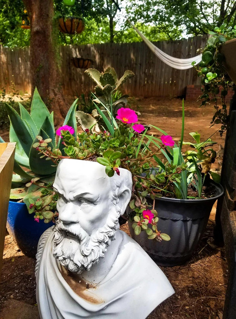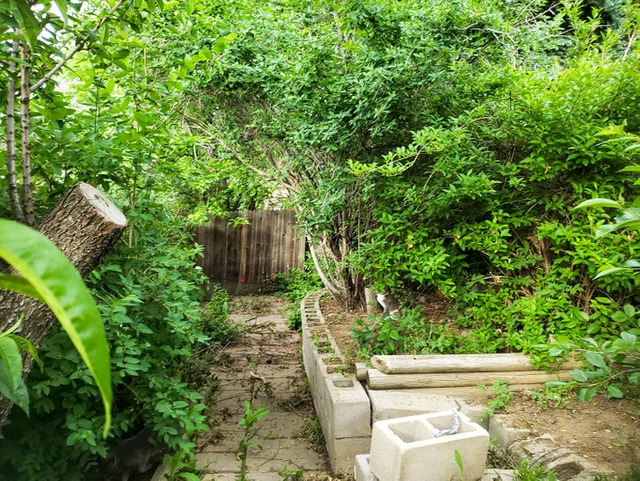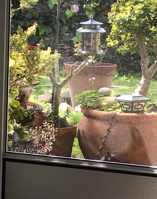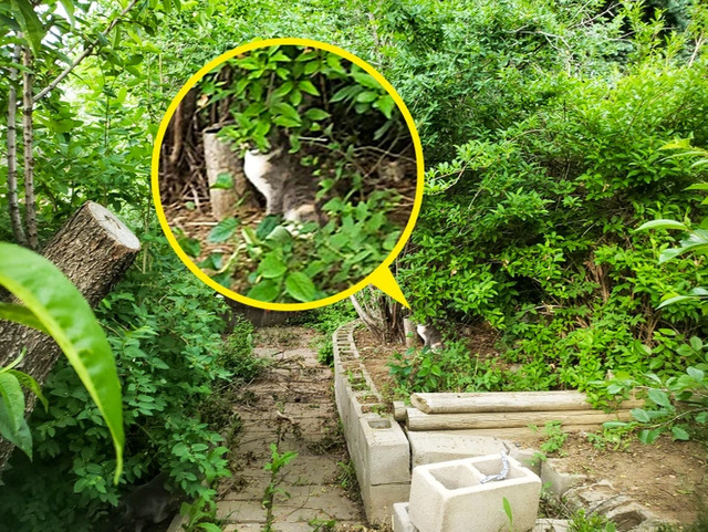 Cevap: Kedi sağdaki saksının arkasındaki ağacın dibinde bulunuyor.
