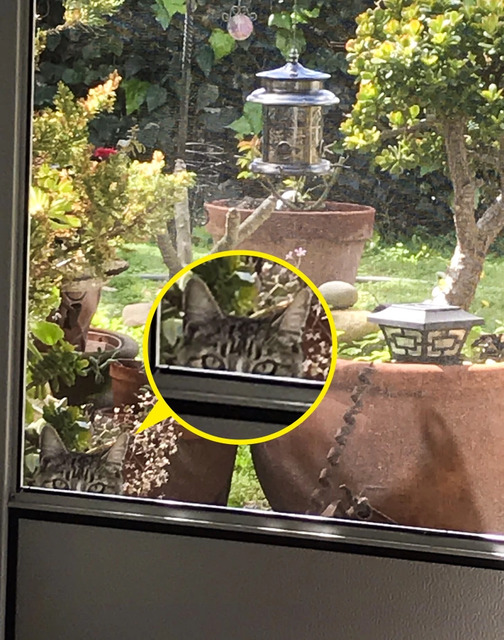 Cevap: Kedi çalılıkların arasında saklanıyor.