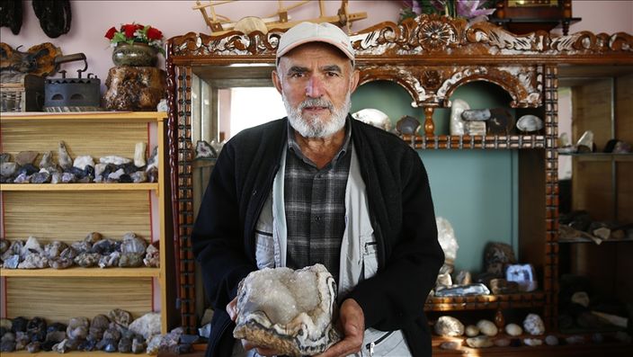Kayseri'de eski inşaat ustası 70 yaşındaki Mehmet Ali Özok, çoğunluğu yarı kıymetli taşlardan oluşan koleksiyonunu bahçesine yaptırdığı odada sergiliyor