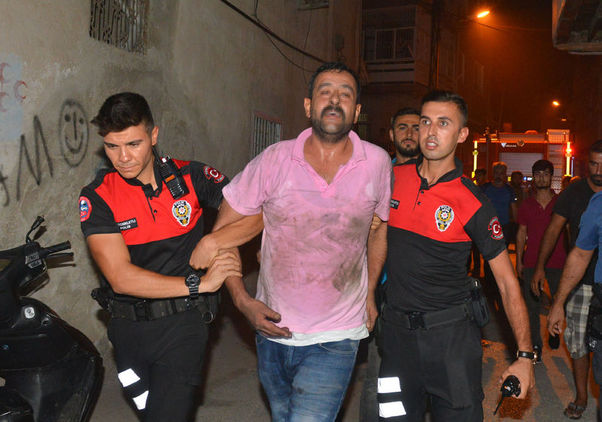 Polis nezaretinde ekip aracına götürülürken, "Ben yakarım dersem, yakarım" diyen Şayıp Ş.'ye yakınları saldırmak istedi. Polisin, kalabalığın elinden güçlükle çıkardığı şüpheli, ambulansta ayakta tedavi edilen eski eşi Ülkü E. ve oğlu ile 5 Ocak Polis Merkezi'ne götürüldü.