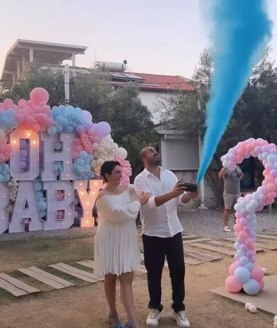 Ezgi Mola ile Mustafa Aksakallı, Alaçatı'da düzenledikleri bir partiyle bebeklerinin cinsiyetini açıkladı.