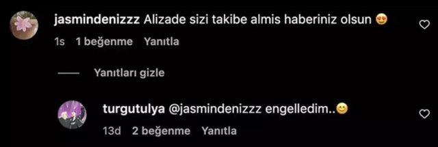 Ulya Turgut, Alizade’yi Instagram’dan engellediğini söyledi.