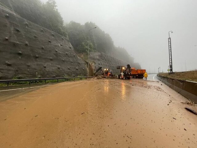 Anadolu Otoyolu Bolu geçişinde dağ yamacından kopan kayaların TIR'a çarpması sonucu zincirleme trafik kazası meydana geldi