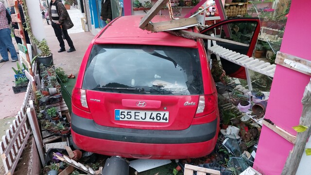 Samsun'un İlkadım ilçesine bağlı Fevziçakmak Mahallesi Aziziye Caddesi'nde Nesime Tiryaki idaresindeki otomobil, kontrolden çıkarak kaldırımı aşıp Murat Şener'e ait çiçekçi dükkanına girdi.