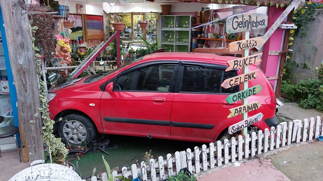 Facianın eşiğinden dönüldü: Otomobil çiçekçi dükkanına daldı