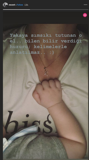 Ünlü oyuncudan oğlu Karan'la yeni bir paylaşım geldi. Oğluyla fotoğrafını paylaşan Evcen altına, "Yakaya sımsıkı tutunan o el... Bilen bilir verdiği huzuru; Kelimelerle anlatılmaz" notunu düştü.