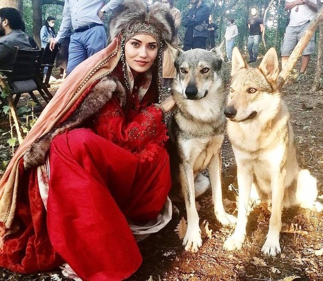 Köpeklerle objektif karşısına geçen, Fahriye Evcen, gönderisinde, "Akça ve kurtları... Biraz iyi anlaşıyorlar." ifadelerini kullandı.