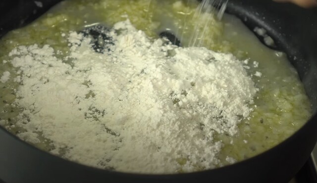 Kıvam alınca tuzunu ekleyip karıştırmaya devam edin. Bu sırada ununu ekleyin ve karıştırmaya devam edin.