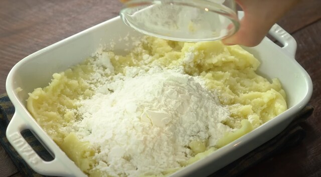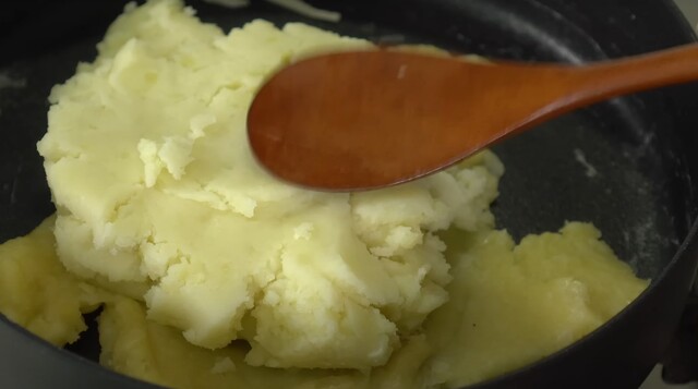 Bu aşamada tencerenin altını kapatın ve patates püresi harcınızı bir borcama alın.