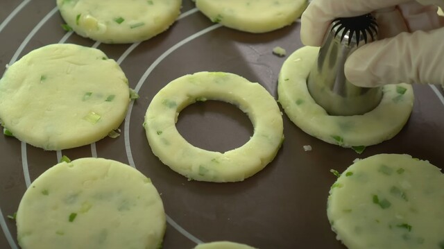 Harcın her yerini böldükten sonra ortalarında da delik açıp soğan halkası şekli verin.