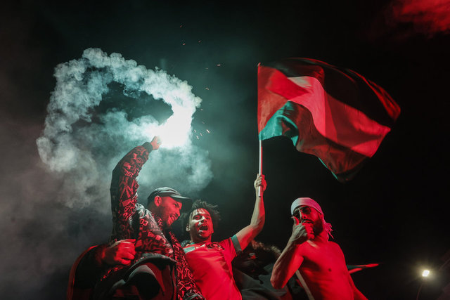 Şehir merkezinde araç konvoyu oluşturan futbolseverler bayrak sallayarak ve korna çalarak tur attı. Kutlamalarda çeşitli Arap ve Müslüman ülkelerin bayrakları da taşındı.