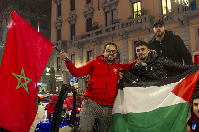 İtalya’da Faslıların yoğun bulunduğu kentlerden Milano’daki Corso Buenos Aires Caddesi'nde toplanan binlerce Faslı, milli takımlarının Portekiz’i yenerek yarı finale yükselmesini coşkuyla kutladı.
