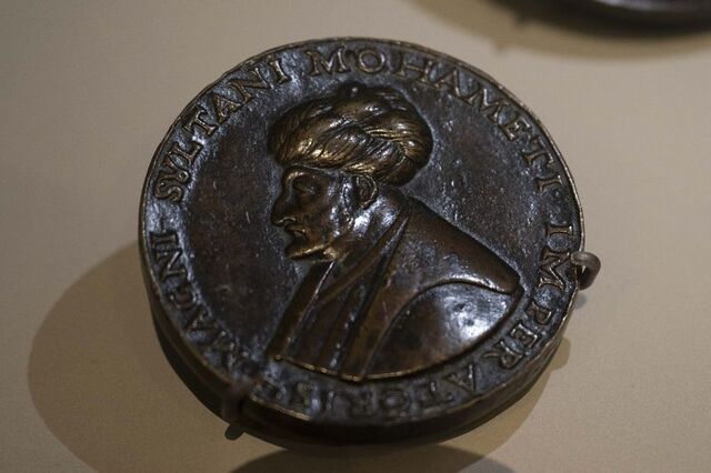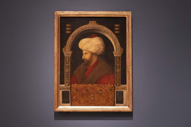 Osmanlı padişahı Fatih Sultan Mehmet'in İtalyan sanatçı Gentile Bellini tarafından yapılan ünlü portresi, Londra'daki Victoria ve Albert Müzesi'nde (VA) yine Bellini ve iki sanatçı tarafından yapılan Fatih portreli kabartmalı bronz madalyonlarla sergileniyor