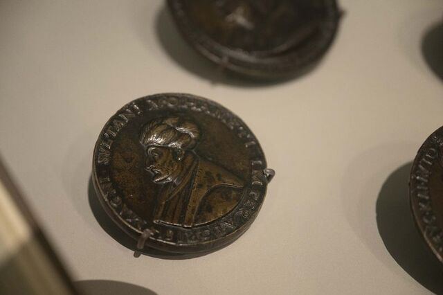 VA'da Fatih Sultan Mehmet'in tasvir edildiği tek eser Bellini'nin tablosu değil. Sergide, İstanbul ziyareti sırasında Fatih'i yakından görüp portresini çizme şansı yakalayan Bellini'nin bir de Sultan Mehmet'i tasvir ettiği kabartmalı bronz madalyonu bulunuyor.