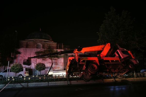 Haberler Gündem 3. Sayfa Fatih'te bayrak asan vinç askıda kaldı | Son dakika haberleri