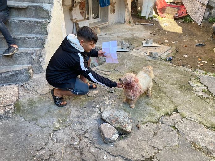 Köpeği eve soktuğunu gören mahalle sakinleri durumu Fahrettin Demir'e bildirdi. Demir ve ailesi şüphelinin evine girdiğine Polat'ı kanlar içerisinde gördü. Polat'a bir eczanede köpeğe pansuman yapıldı. Mahallelinin ihbarı üzerine olay yerine gelen polis ekipleri yabancı uyruklu olduğu belirtilen şüpheliyi gözaltına aldı. Şüphelinin emniyetteki işlemlerinin devam ettiği öğrenildi.