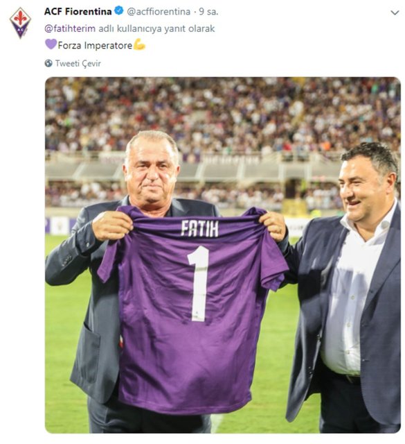 Fiorentina, korona virüs testi pozitif çıkan Fatih Terim’i unutmadı. Bir dönem Terim’in de çalıştırmış olduğu İtalyan temsilcisinin sosyal medya hesabından deneyimli teknik adamın 1 numaralı Fiorentina formasıyla çekilmiş fotoğrafı paylaşıldı ve üstüne ‘Haydi İmparator’ notu düşüldü.