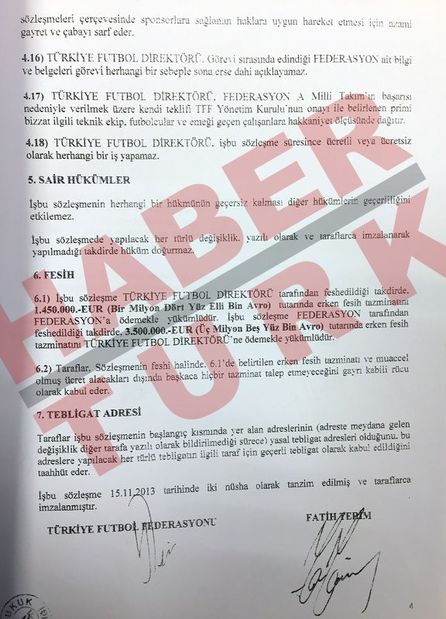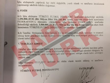 ✓ Mahkeme, haksız feshe karar verirse, sözleşmenin 6. maddesi gereğince Fatih Terim’e 13 milyon TL ‘erken fesih tazminatı’ ödenecek. TFF ayrıca, Terim’e yüzde 20 de ‘icra inkar tazminatı’ olarak 2,6 milyon TL ödemek zorunda kalacak. Bu durumda TFF, Terim’e toplam 15,6 milyon TL ödeyecek.