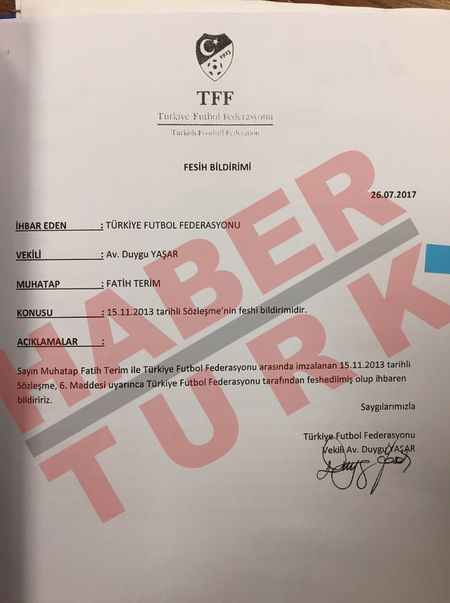 Bu iddiaların haberlere konu olması ve Terim'in kavgayla ilgili 19 Temmuz'da, "Yine olsa yine yaparım" açıklamaları üzerine harekete geçen TFF, 26 Temmuz'da Terim'in sözleşmesini tek taraflı feshetti.