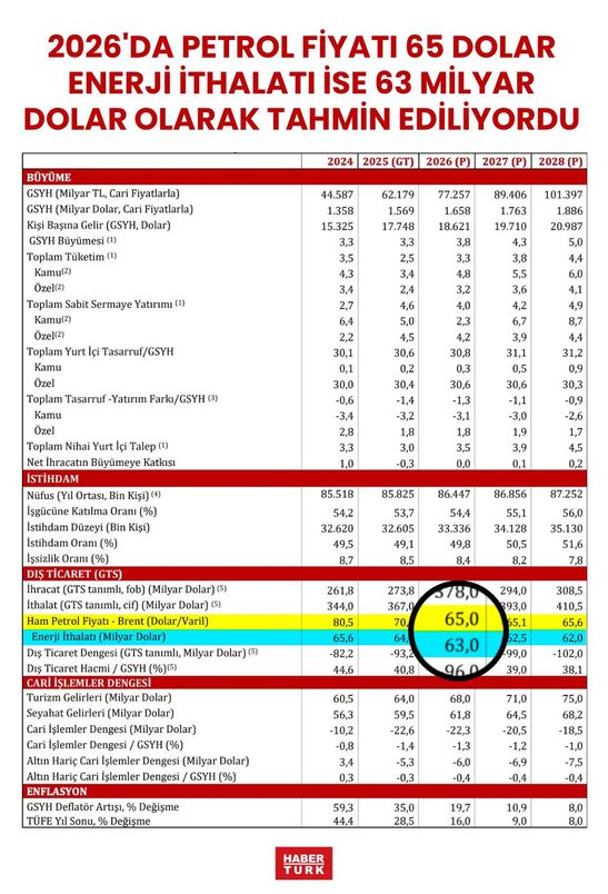 Savaş tüm dünyayı olduğu gibi Türkiye'yi de enerji fiyatları nedeniyle olumsuz etkiliyor. Net bir enerji ithalatçısı olan Türkiye 2026 Orta Vadeli Program'da (OVP) petrol fiyatının bu yıl ortalama 65 milyar dolar ve enerji ithalatının da 63 milyar dolar olacağını tahmin ediyordu. Ancak savaş tüm dengeleri değiştirdi. Özellikle ABD Başkanı Donald Trump'ın politikalarından birisi olan dünyada petrol fiyatının düşük olacağına dair tahminler gibi OVP'deki bu tahmin de şimdi çok fazla aşıldı. Şu anda fiyat 85 dolara çıkmış durumda. Biz fiyatı bundan önce bir kaç gün seyrettiği 80 dolar olarak alsak bile bu yükselişin (eğer fiyat düşmez ise) Türkiye'ye maliyetinin 14,5 milyar dolar artışla 177,5 milyar dolara çıkabileceği kolaylıkla hesaplanabiliyor.