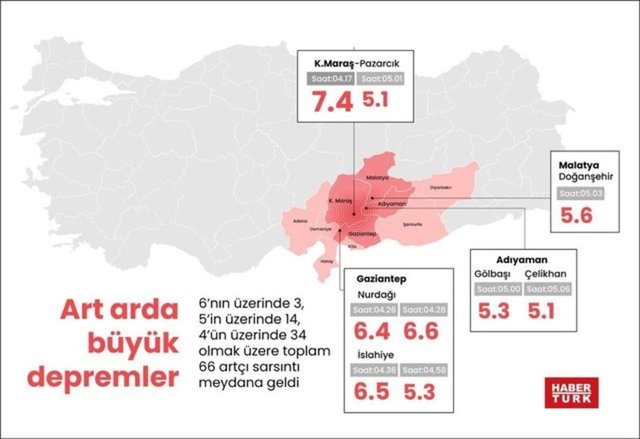 MTA tarafından hazırlanan Türkiye Diri Fay Haritasına göre, Türkiye'de 5,5 ve üzeri büyüklükte deprem üretebilecek 485 diri fay bulunuyor. Paylaşılan haritaya göre ise Türkiye'de doğrudan diri fay üzerine oturan, 45 il alanı üzerinde 110 ilçe bulunuyor. Fay üstünde bulunan iller ise, Aksaray, Aydın, Balıkesir, Bolu, Burdur, Bursa, Bingöl, Denizli, Eskişehir, Erzincan, Erzurum, Hakkari, Hatay, İzmir, Kahramanmaraş, Manisa, Muğla, Kocaeli, Konya, Osmaniye, Sakarya ve Tokat’ın yanı sıra 110 ilçe de fay üzerinde.