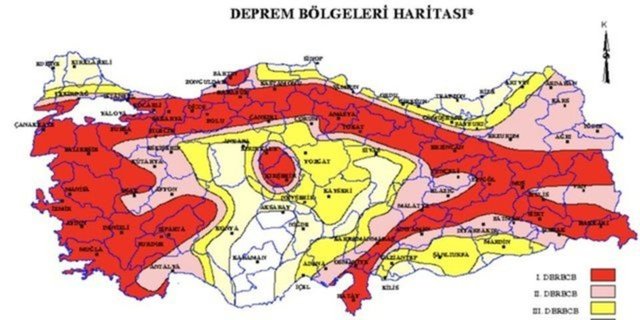 MTA tarafından hazırlanan Türkiye Diri Fay Haritasına göre, Türkiye'de 5,5 ve üzeri büyüklükte deprem üretebilecek 485 diri fay bulunuyor. Paylaşılan haritaya göre ise Türkiye'de doğrudan diri fay üzerine oturan, 45 il alanı üzerinde 110 ilçe bulunuyor. Fay üstünde bulunan iller ise, Aksaray, Aydın, Balıkesir, Bolu, Burdur, Bursa, Bingöl, Denizli, Eskişehir, Erzincan, Erzurum, Hakkari, Hatay, İzmir, Kahramanmaraş, Manisa, Muğla, Kocaeli, Konya, Osmaniye, Sakarya ve Tokat’ın yanı sıra 110 ilçe de fay üzerinde.