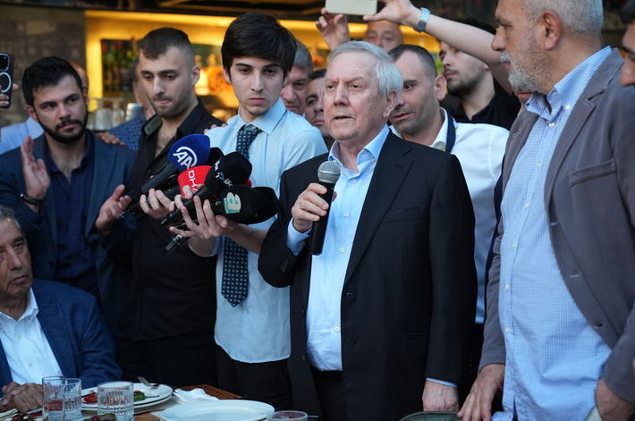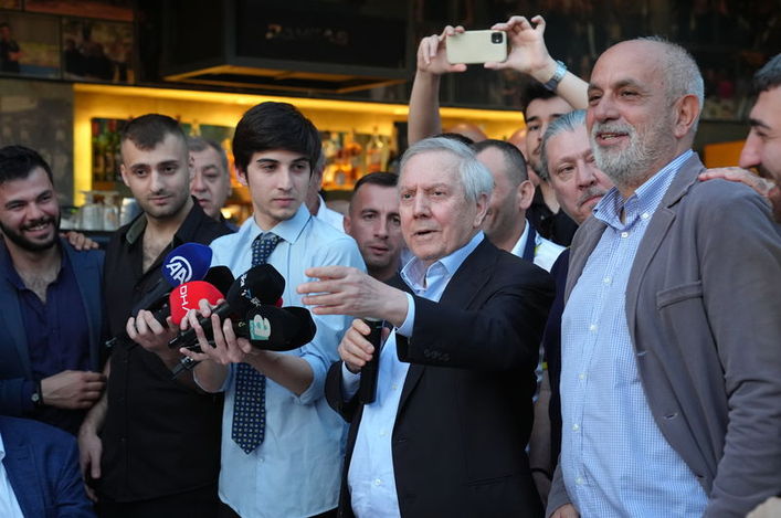Kalamış'ta bulunan bir restoranda kongre üyeleriyle bir araya gelen Aziz Yıldırım, tezahüratlar ve meşaleler eşliğinde mekana giriş yaptı.