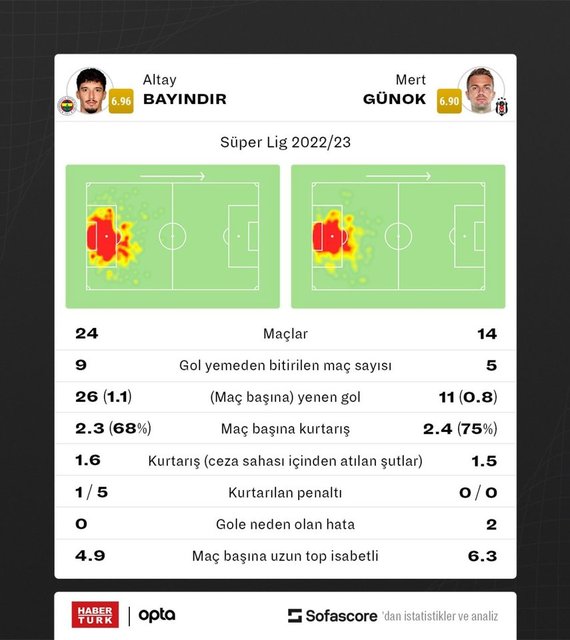 Fenerbahçe'nin takım kaptanı, bu sezon 24 maçta görev yaparken, kalesinde 26 gol gördü. Maç başına 1.1 gol yiyen milli file bekçisi, 9 maçta ise kalesinde gole izin vermedi. Altay ayrıca, maç başına 2.3 kurtarış ortalaması yakaladı. Büyük maçlarda yediği goller nedeniyle zaman zaman taraftarının tepkisini çeken deneyimli kaleci, Beşiktaş karşısında kritik bir rol üstlenecek.