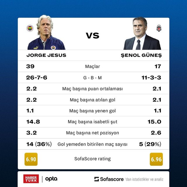 Jorge Jesus, Fenerbahçe'deki ilk sezonunda oynattığı futbolla sarı-lacivertli taraftarların sevgisini kazandı. Portekizli teknik adam yönetiminde 39 resmi maçta 26 galibiyet, 7 beraberlik ve 6 mağlubiyet yaşayan Fenerbahçe, maç başına 2.2 puan ortalaması yakaladı. Sarı-lacivertliler gol ortalamasında ise 2.2'lik oranla dikkat çekiyor. 68 yaşındaki çalıştırıcı, derbi maçlarda ise henüz bekleneni veremedi. Jesus'lu Fenerbahçe bu sezon Beşiktaş, Galatasaray ve Trabzonspor'la oynadığı 3 maçta galibiyet alamazken, 2 yenilgi, 1 de beraberlik yaşadı. Jesus, Fenerbahçe'nin başında ilk derbi galibiyetini yaşamak için sahaya çıkacak.