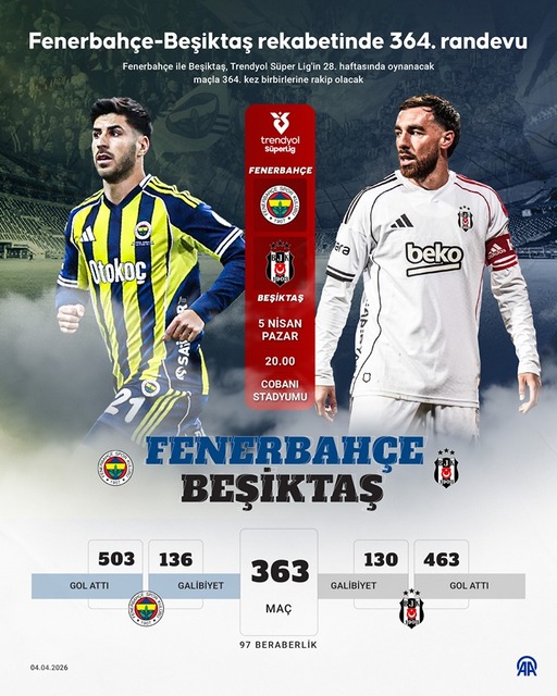 Fenerbahçe ile Beşiktaş, Trendyol Süper Lig'in 28. haftasında oynanacak maçla 364. kez birbirlerine rakip olacak.