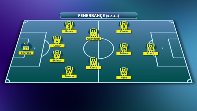 Ederson, Semedo, Skriniar, Çağlar, Brown, Kante, Guendouzi, Nene, Talisca, Kerem, Cherif.