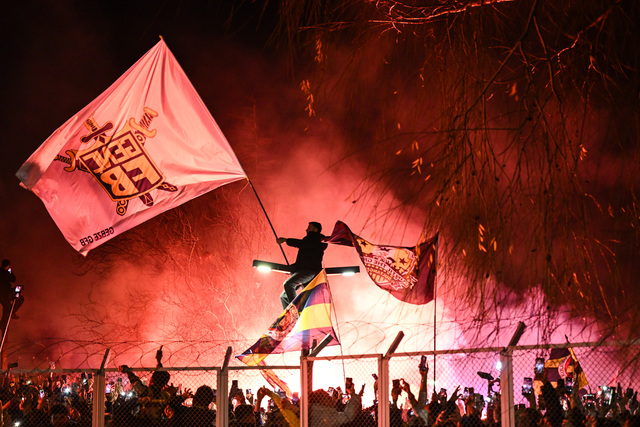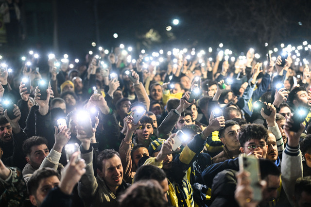 Havalimanını dolduran sarı-lacivertli taraftarlar, yıldız oyuncuyu meşaleler yakıp tezahüratlar yaparak bekledi.