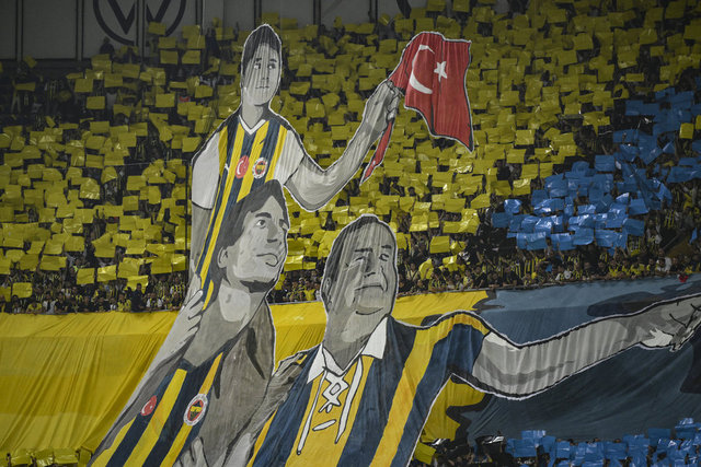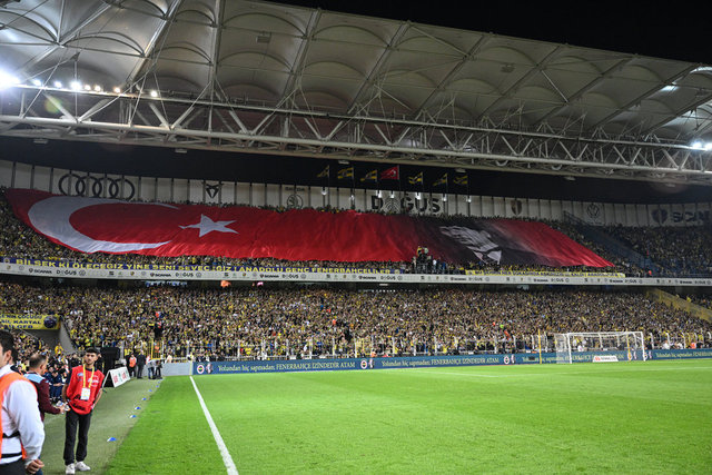 Fenerbahçe tribünleri "Cumhuriyet'in Feneri Aydınlatıyor Bizleri" pankartını da kale arkasında açtı.